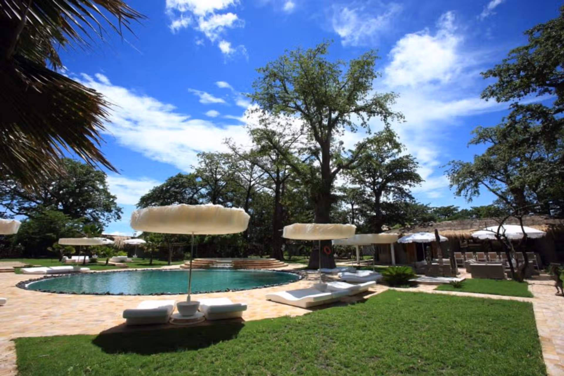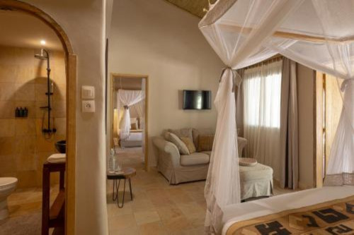 - Aménagée dans un style africain chic, elle utilise des matériaux naturels (bois, pierre, fibres végétales).