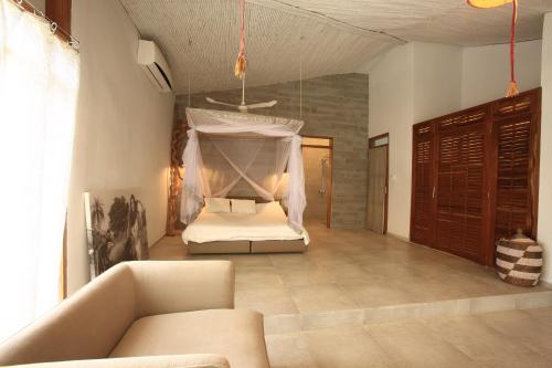 L’hôtel propose des chambres et bungalows élégamment aménagés, conçus dans un esprit boutique-hôtel, mêlant confort moderne et matériaux locaux. Chaque hébergement est pensé pour offrir intimité, sérénité et bien-être, avec une décoration soignée et une atmosphère chaleureuse.
