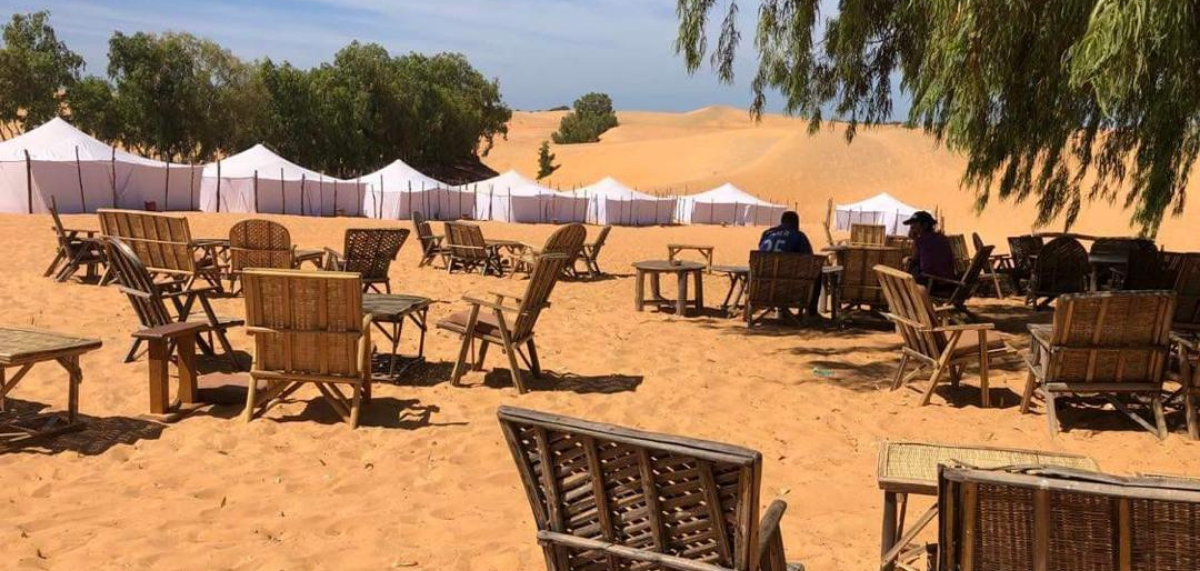 Le Camp du Désert de Lompoul est un site touristique unique situé au cœur du célèbre désert de Lompoul, au Sénégal. Niché entre de magnifiques dunes de sable doré, ce campement offre une expérience authentique alliant aventure, dépaysement et découverte de la culture sahélienne. Avec ses tentes confortables inspirées du style mauritanien, son accueil chaleureux et son atmosphère paisible, le Camp du Désert de Lompoul est l’endroit idéal pour vivre une escapade inoubliable, profiter de couchers de soleil spectaculaires et passer des nuits magiques sous les étoiles au milieu d’un paysage naturel exceptionnel.