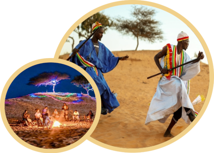 Plongez au cœur de la culture sénégalaise à Lompoul avec des animations traditionnelles envoûtantes. Au rythme des tam-tams, dansez autour du feu et partagez des moments authentiques avec les habitants. Une soirée chaleureuse et inoubliable sous le ciel étoilé du désert.